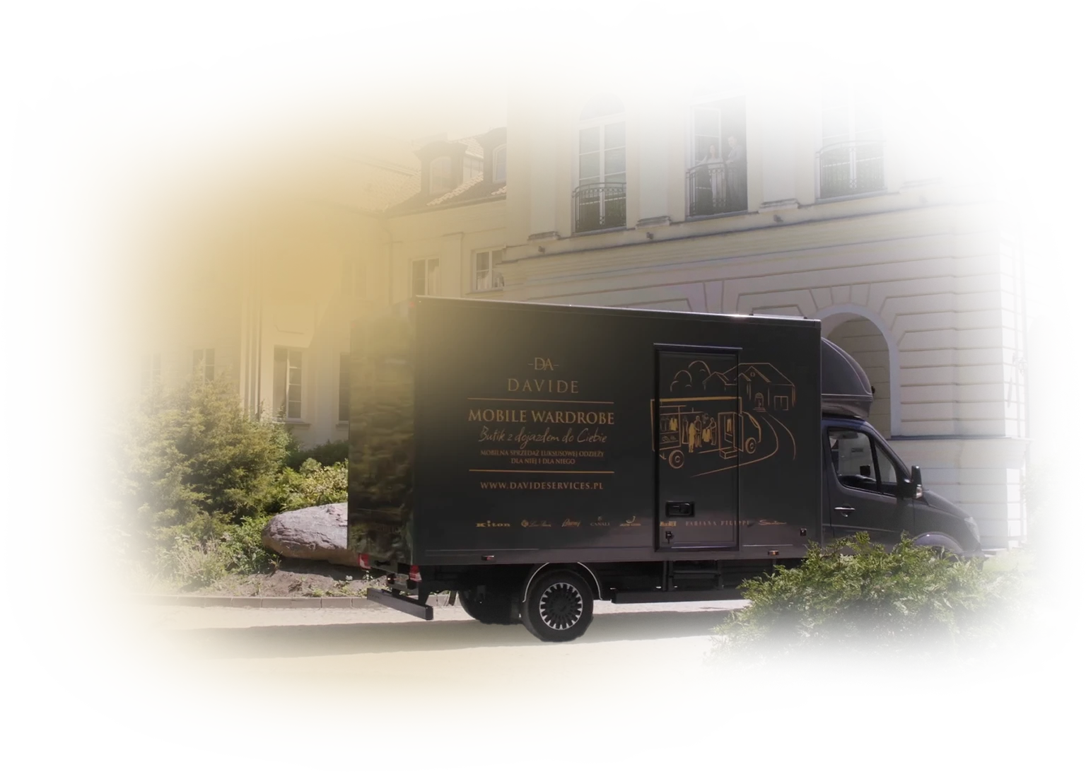 Oprócz usługi szycia na miarę, samochód z Mobilną Garderobą umożliwia uzupełnienie stroju o inne elementy ubrania, obuwie czy akcesoria wybrane z gotowych kolekcji z butiku Davide – wszystko w Twoim rozmiarze.